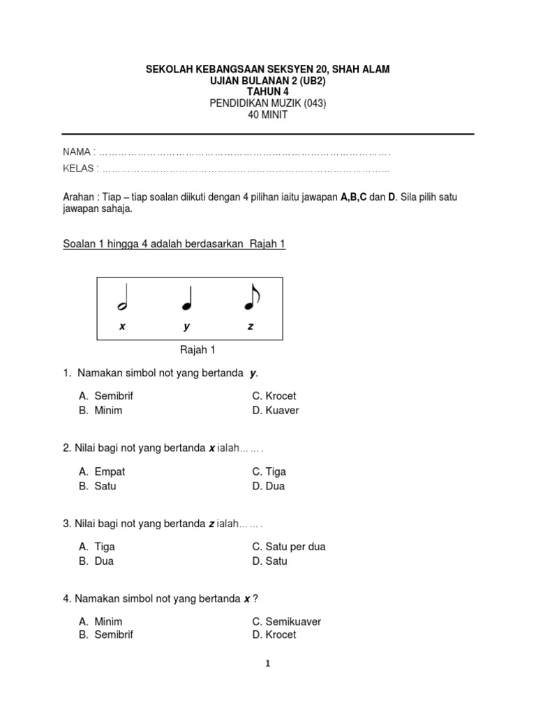 Soalan Muzik Tahun 5 Peperiksaan Pertengahan Tahun 2015