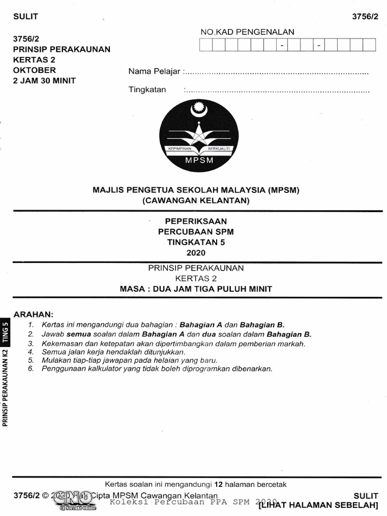 Soalan Percubaan Spm Prinsip Perakaunan Kelantan 2019 E Perkhidmatan