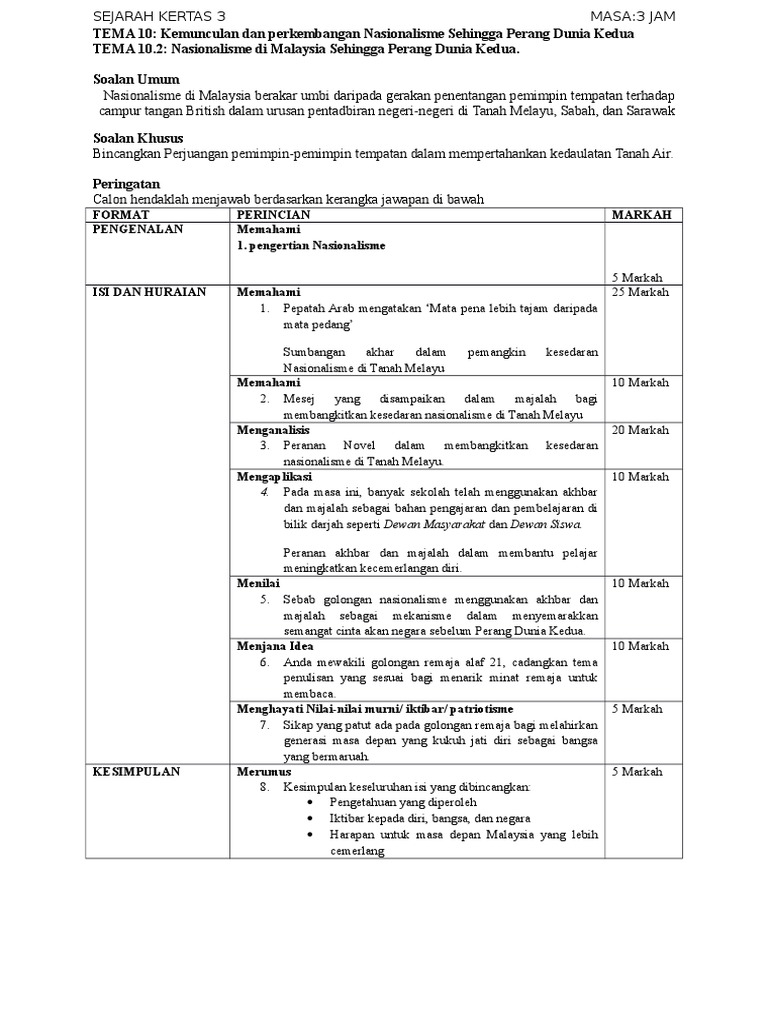 Skema Jawapan Kertas 3 Sejarah Tema Nasionalisme