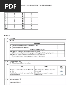 Skema Jawapan Trial Pt3 Science 2019 Sm Sains Perempuan